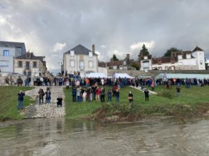 Place du port, marinières et mariniers des associations environnantes nous ont rejoints à la Colonne des mariniers pour rendre hommage aux anciens mariniers qui, par leur courage sauvèrent un grand nombre de personnes lors des grandes crues du 19e siècle.